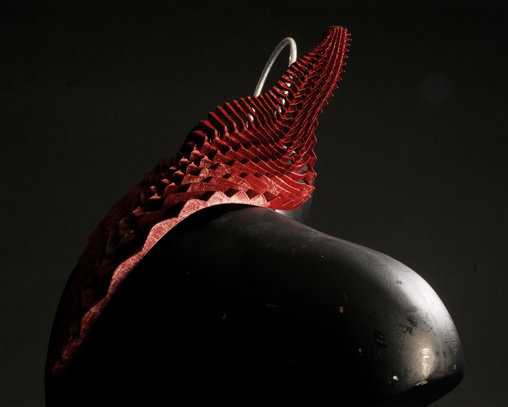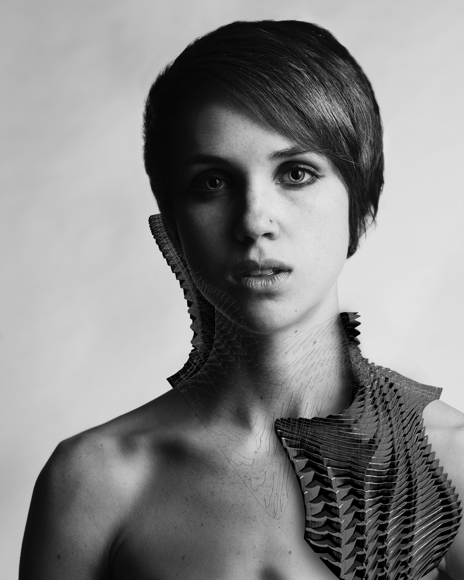 This phenomenological garment is a prosthetic device designed to target the immediacy of the human skin by filtering sensations on the neck, shoulder, and ear of the person wearing it. Evolving from the architectural vocabulary of the Sensory Pavilion, the garment is comprised of a series of apertures of variable sizes that expose certain areas of the skin to the elements while simultaneously restricting others. Such duality helps to create a conflicted effect that allows the person to experience and become aware of the subtleties of the phenomena present at the site.